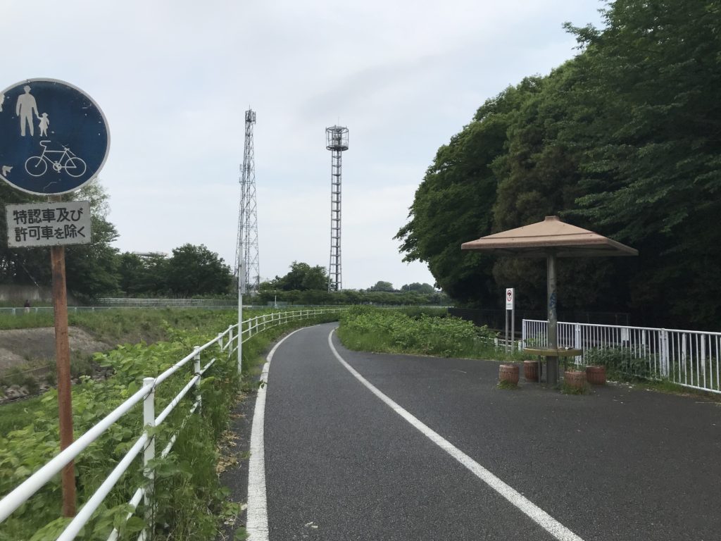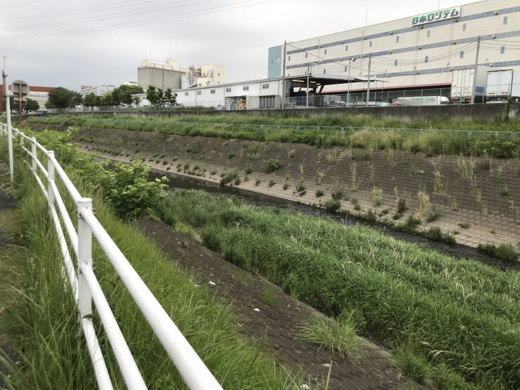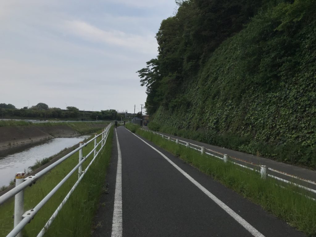 左を流れるのは境川。南方向を見る。ジョギングやサイクリング、ペットの散歩を楽しむ人が多いです。