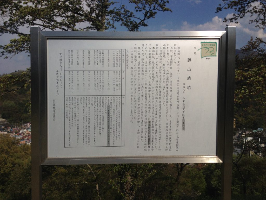享禄5年/天文元年(1532年)には、小山田信有が勝山城の近くにある谷村館に本拠を構えたことが「勝山記」で確認できる。