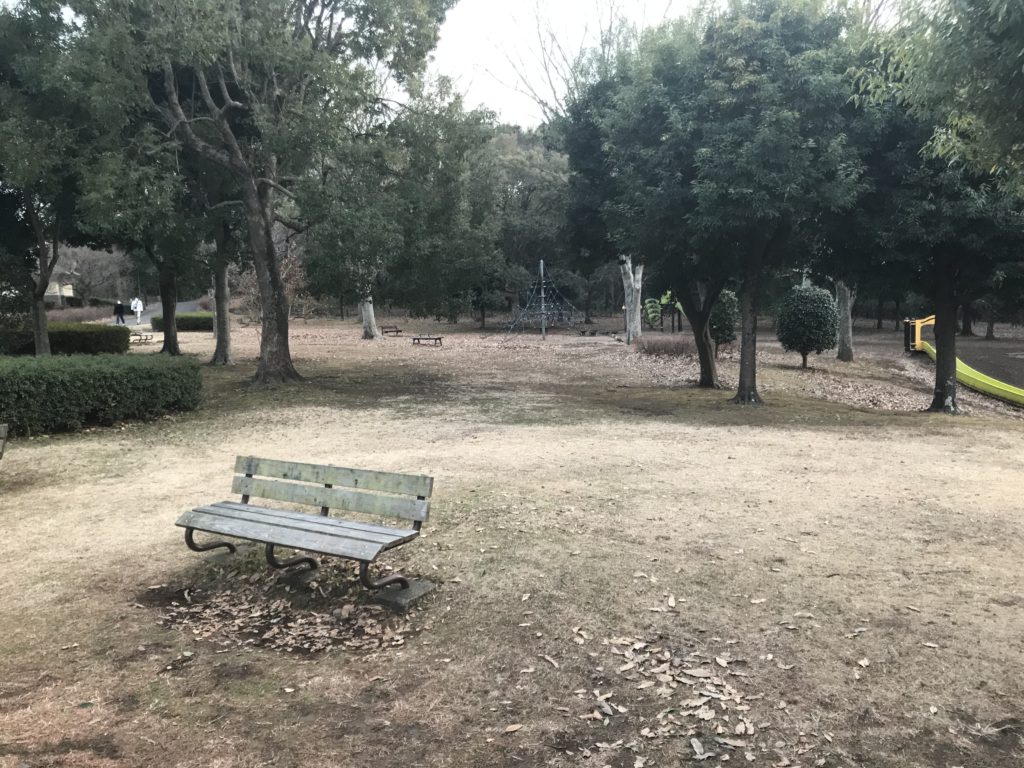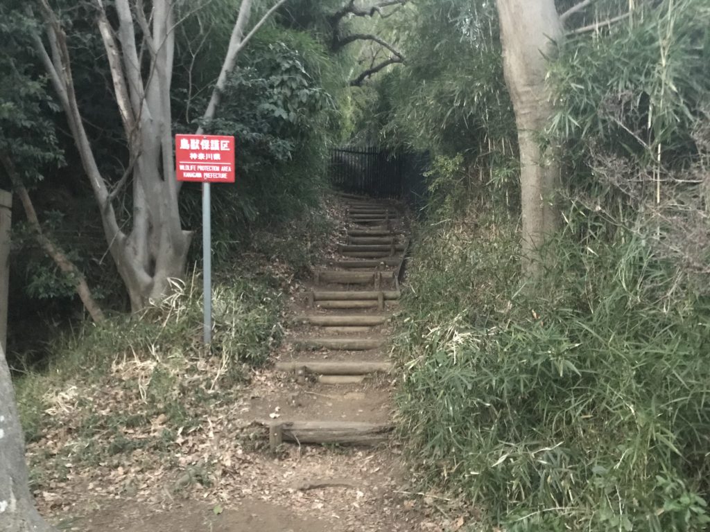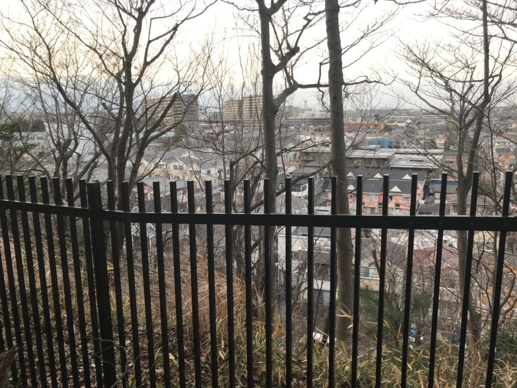 大庭城城内の南側には、フェンスのある部分もある。