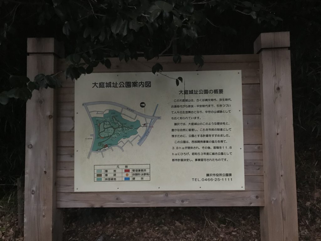 大庭城の最南端の出入り口の横にある案内掲示板