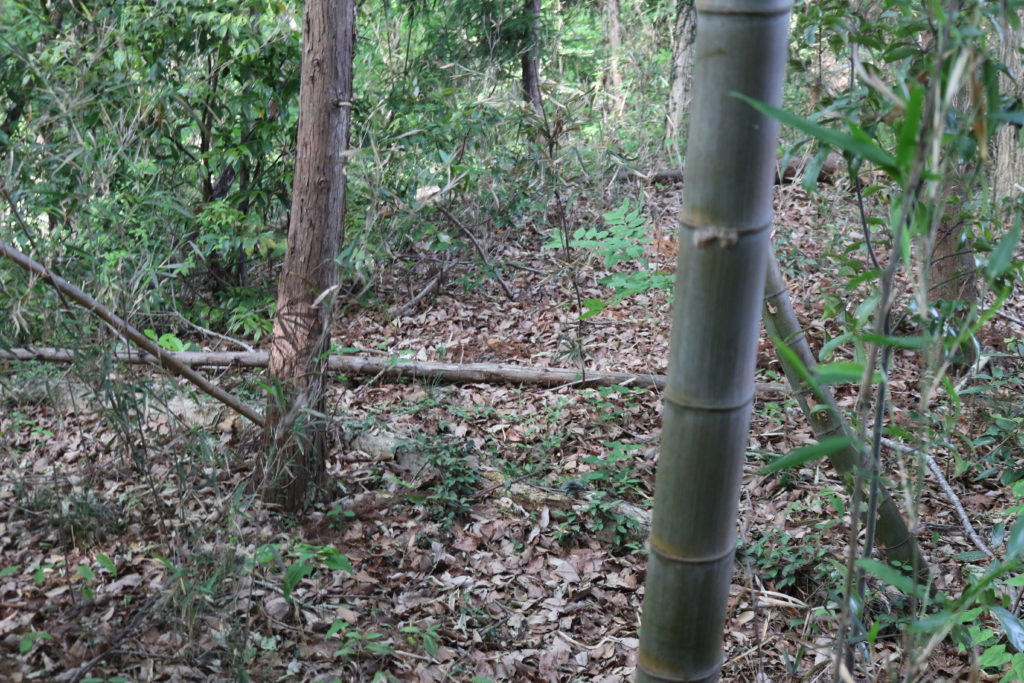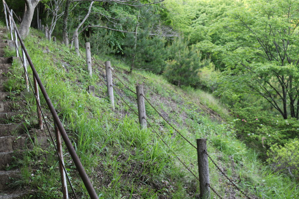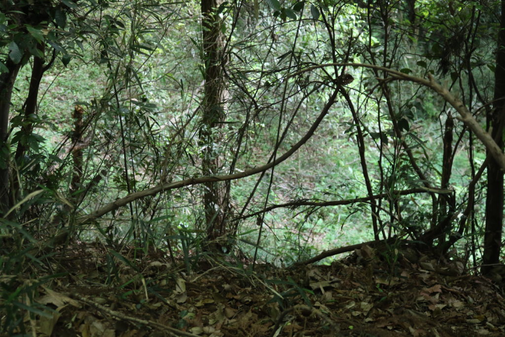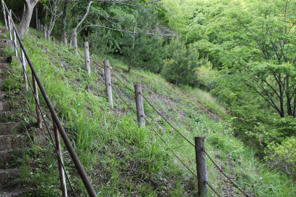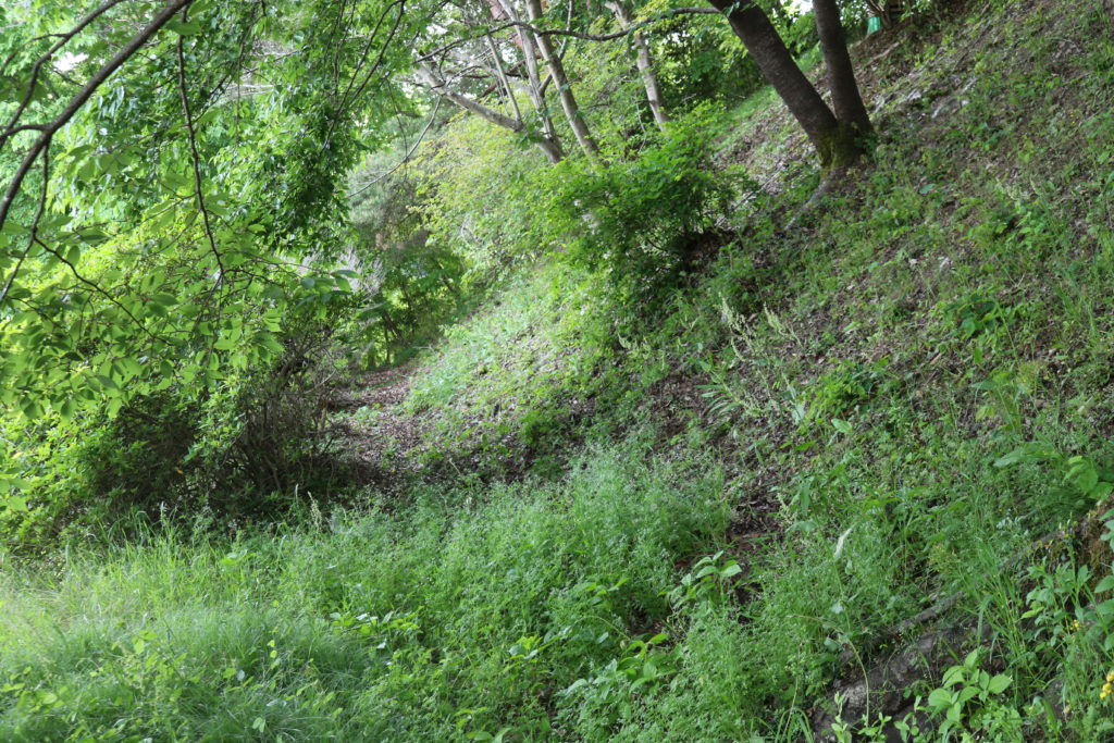 階段を上がっている途中に城の南側の尾根の斜面を撮影しました。