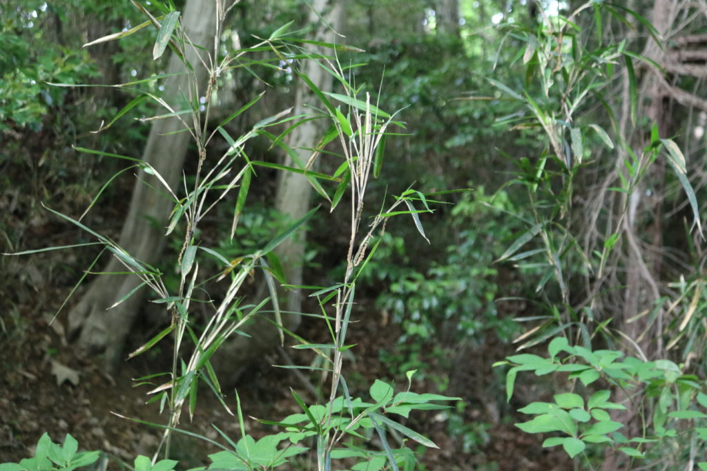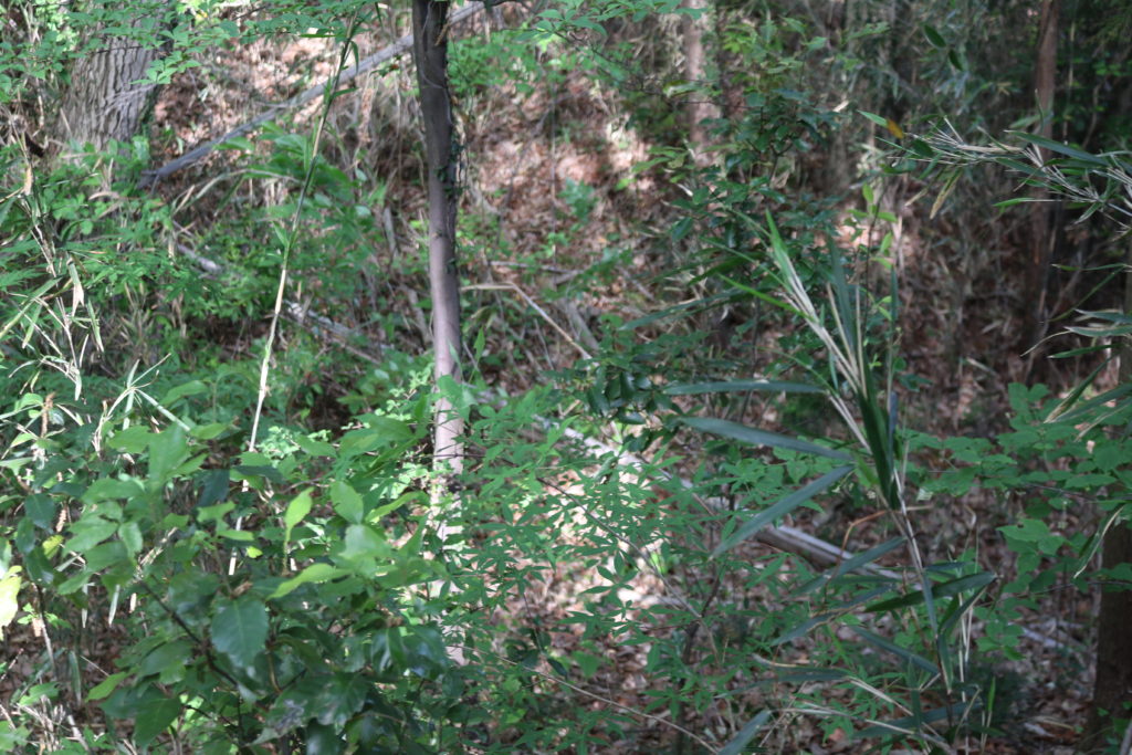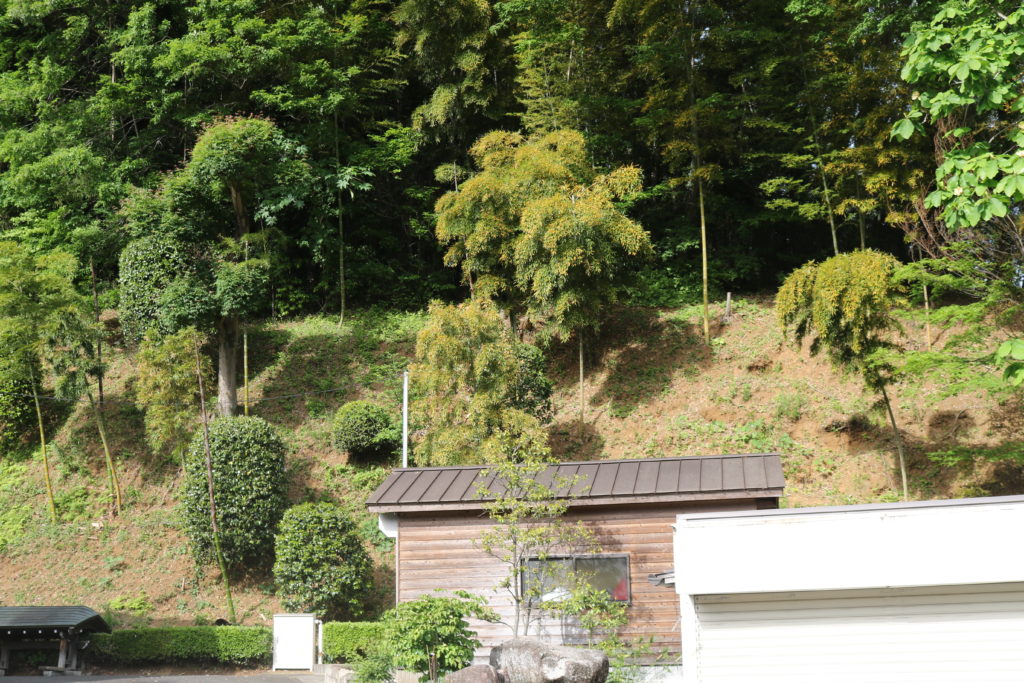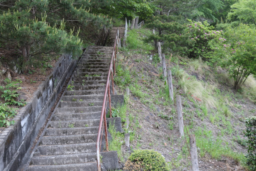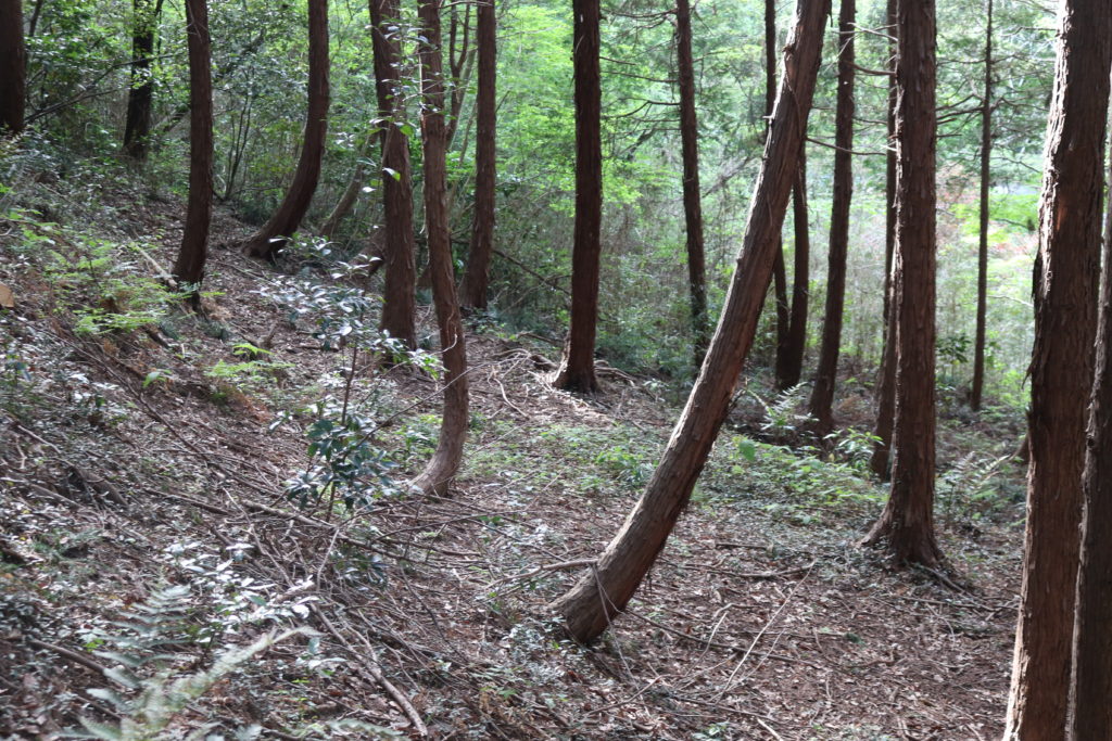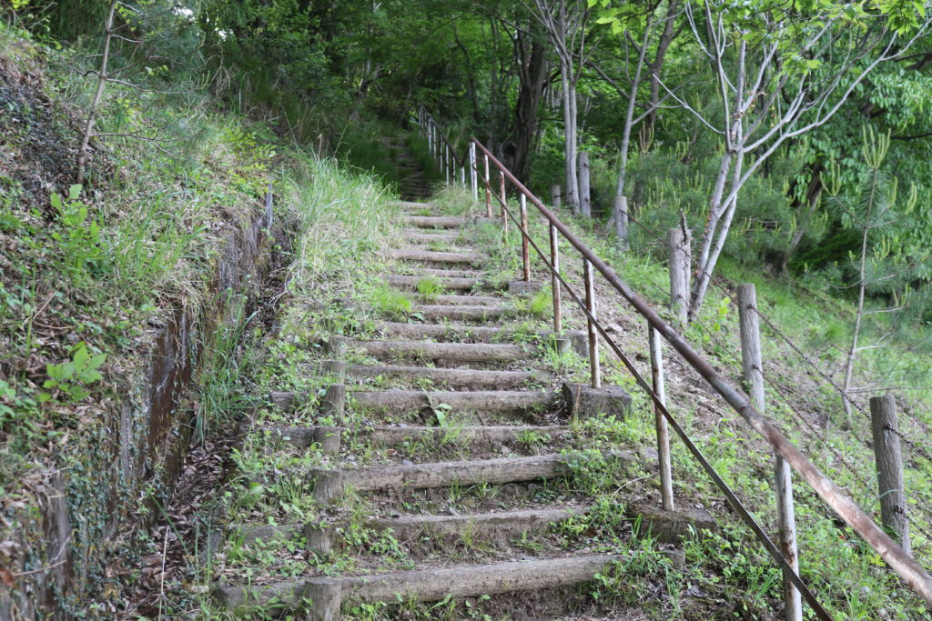階段を上がっている途中に城の南側の尾根の斜面を撮影しました。