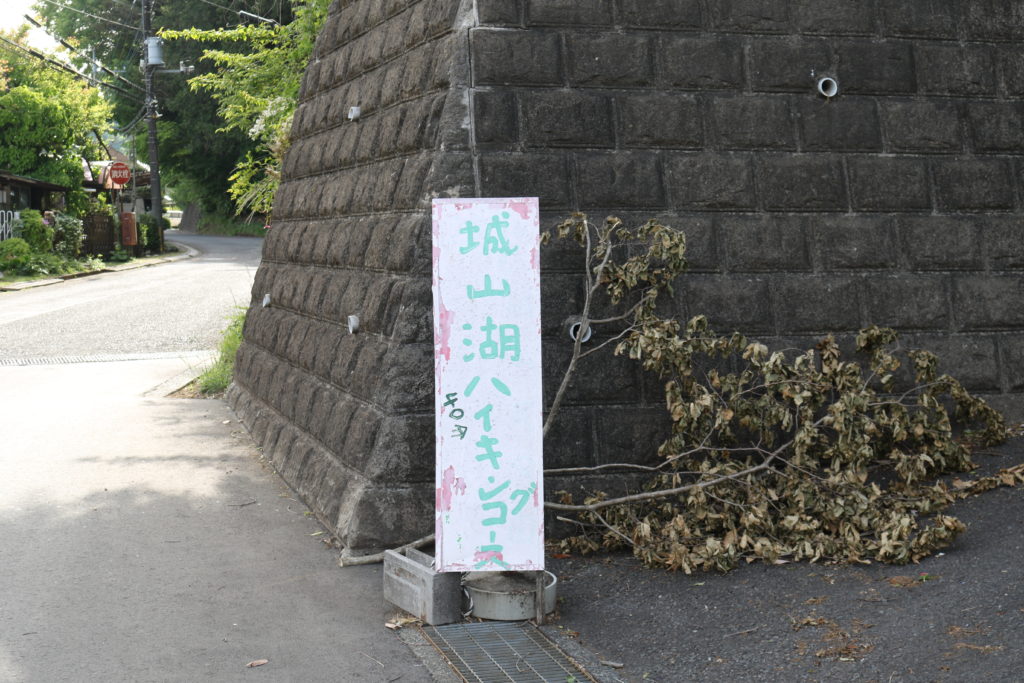 城山湖ハイキングの看板。宝泉寺の奥側にこの看板があります。