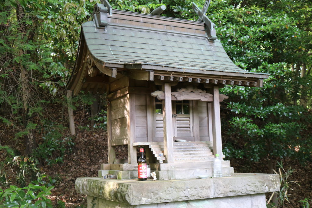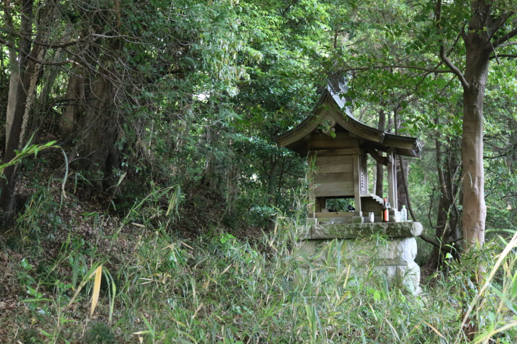 南側の尾根を道なりに行けば、主郭中心部に到着します。摂社があります。