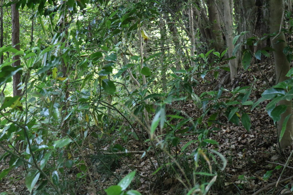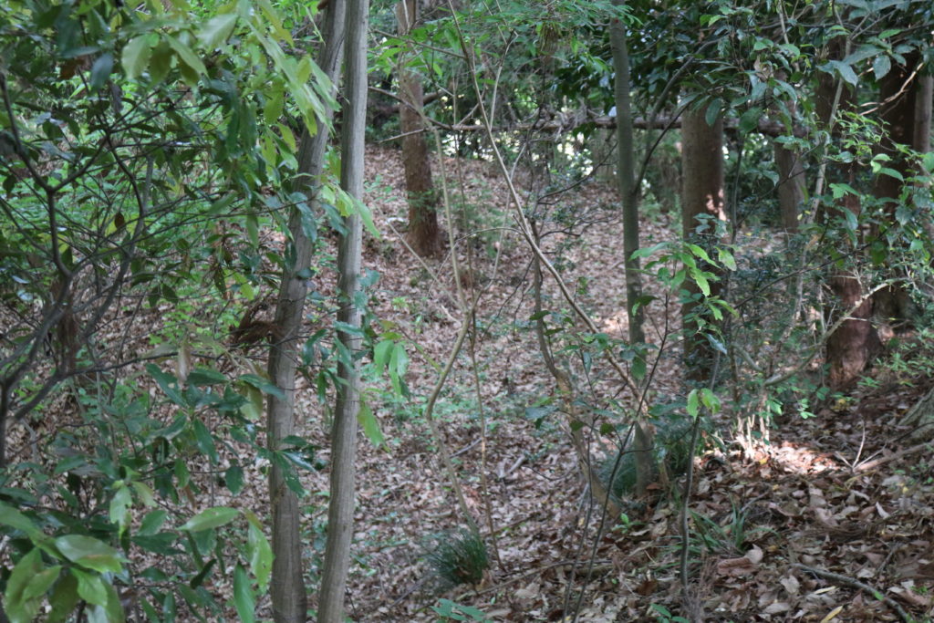 南側の尾根の中腹には腰曲輪のような部分があります。