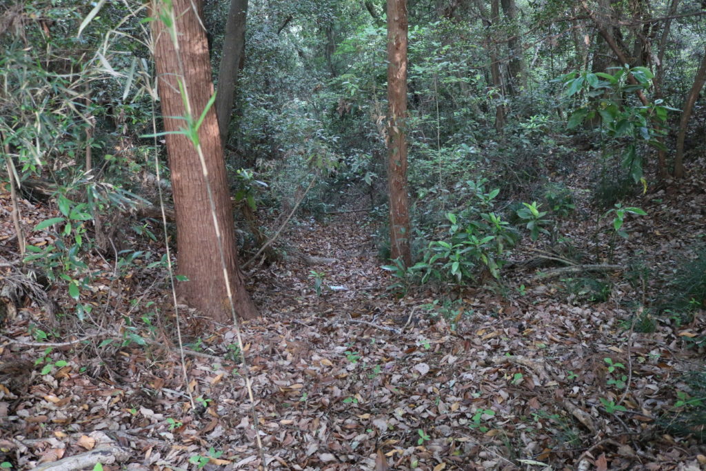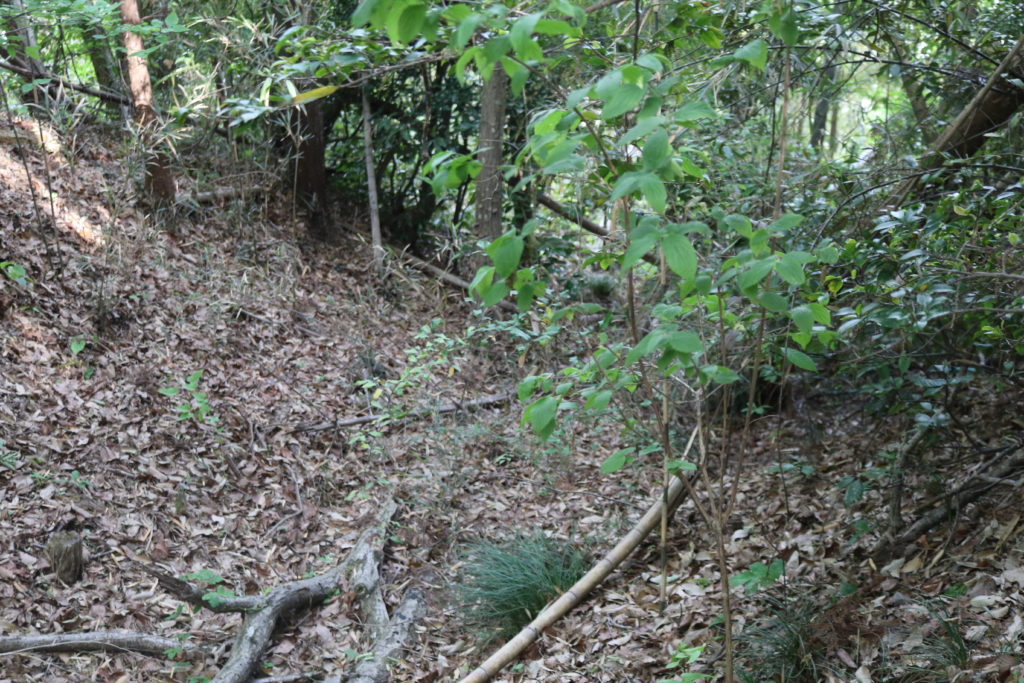主郭の東に1つ目の堀切。そのまま南側(宝泉寺側)に竪堀が落ちています。