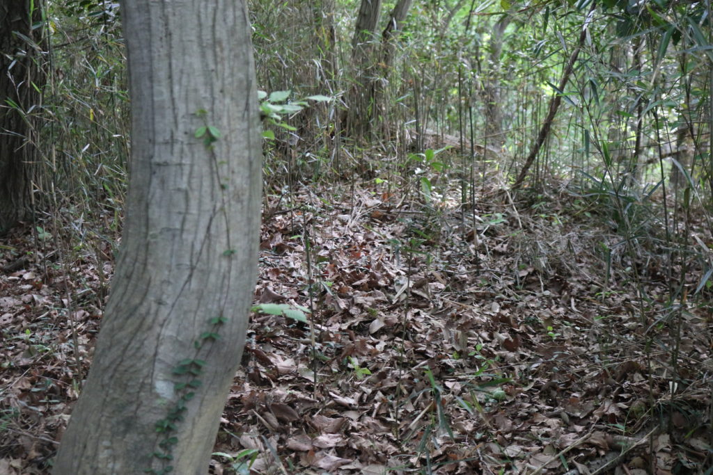 城北側の林も整備されています。緩やかな坂。